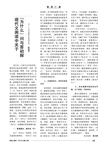 071:智育广角·现代文阅读中关于“为什么”问与答初探