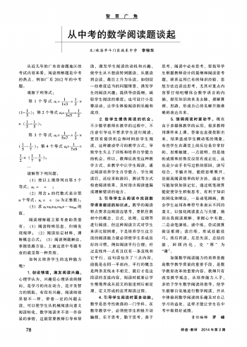 师道教研版 智育广角·从中考的数学阅读题谈起 080 2014-02-281 2014年02月28日 星期五