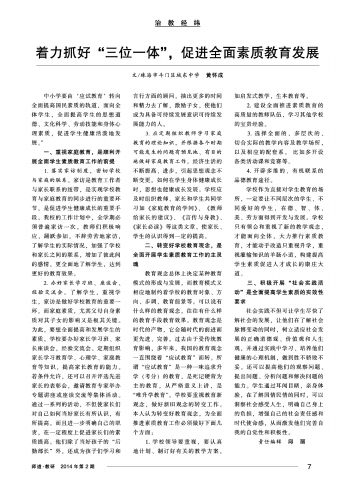 师道教研版 治教经纬·着力抓好“三位一体”,促进全面素质教育发展 009 2014-02-281 2014年02月28日 星期五