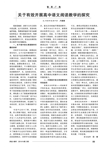 师道教研版 智育广角·关于有效开展高中语文阅读教学的探究 091 2014-02-281 2014年02月28日 星期五