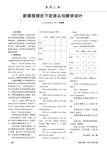 师道教研版 智育广角·新课程理念下定语从句教学设计 096 2014-02-281 2014年02月28日 星期五