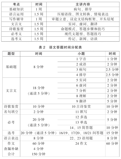考场上答题是一个系统工程,哪个环节出问题,都有可能会影响大局。合理地安排好答题时间,无疑是至关重要的。哪些题该花多少时间,要了如指掌,这样才不至于出现某道题花了大量时间而不自觉的情况。(见表2)