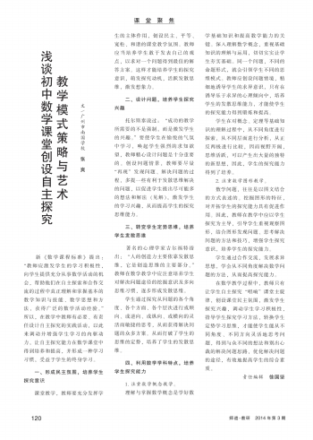 第122页:课堂聚焦·浅谈初中数学课堂创设自主探究教学模式策略与艺术