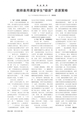 教师善用课堂学生“错误”资源策略