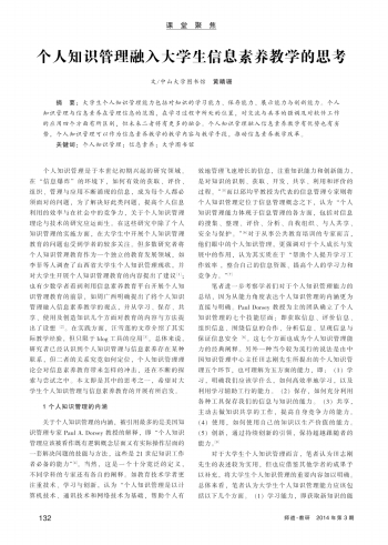 第136页:课堂聚焦·个人知识管理融入大学生信息素养教学的思考