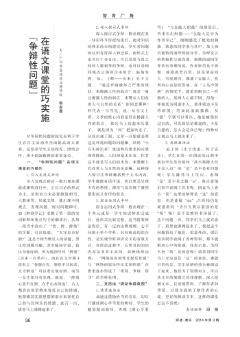师道教研版 智育广角·“争辩性问题”在语文课堂的巧实施 038 2014-03-301 2014年03月30日 星期日