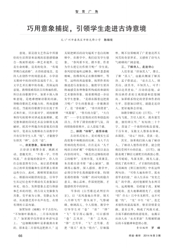 师道教研版 智育广角·巧用意象捕捉,引领学生走进古诗意境 068 2014-03-301 2014年03月30日 星期日