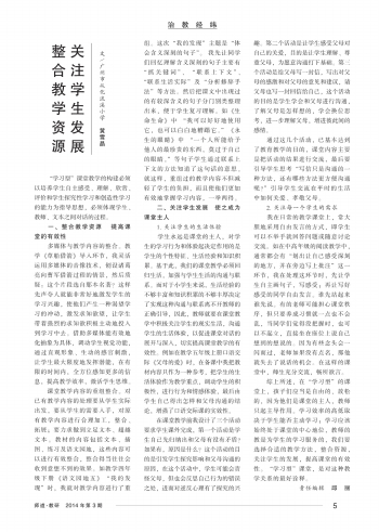师道教研版 治教经纬·整合教学资源 关注学生发展 007 2014-03-301 2014年03月30日 星期日