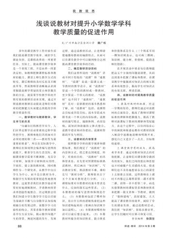 浅谈说教材对提升小学数学学科教学质量的促进作用