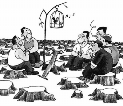 初三的美术课本里有一幅由著名的漫画家方唐创作的漫画——《回想》。这幅漫画绘画创作与我们的生活紧密相连。看看满地的树桩我们会想:大树哪里去了?造纸?做家具?还是……没有了树林,小鸟做不了窝,想听听鸟语,只能够回想解解馋啦!清初石涛曾提出“笔墨当随时代”的理念。所以在这个举国上下提倡绿色环保精神的时代里,我们更要把握时代的脉搏,与时代共呼吸。我们决不能带着学生闭门造车、空穴来风的创作一些脱离生活、毫无生命力的作品。对此,我是这样做的:首先,让学生走出教室、走进大自然,让学生观察感受大自然的无穷魅力——观察树木花草、春夏秋东的变化,了解昆虫、鸟类的生活环境与现状。同时,我们还可以让学生考察家乡的河流、湖泊的水质和污染情况。然后引领学生创作一些环保题材的绘画或小制作,具体做法是在课堂中带领或启发学生用身边的废弃材料来完成自己的艺术作品,并让学生用自己创作的作品来装点自己的家居、教室,并对自己的家人和住宅小区里的邻居进行废物利用的宣传。在这些丰富多彩的美术活动中学生既可以提高绘画水平,锻炼自己的能力,又可以为环保事业做出力所能及的贡献。让学生在感受美、创造美的同时关心社会的环保事业,不仅能培养学生的创造能力,更能让学生积极主动的参与到宣传环保的活动中去。