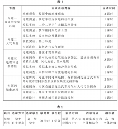 第一,组建选修班级。作为地理选修课程,我校每学期开设两个选修班,在每学期的第一周就对地理校本课程进行宣传,并组织学生报名,于第二周公布名单并开展实践活动。