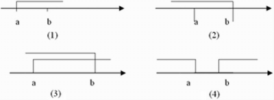 如教学一元一次不等式组的解集时,我先让学生看幻灯片上数轴中表示的解集,找出解集重叠的部分,让他们认识重叠的部分就是不等式组的解集。在学完本节内容后,在投影片中出现以下四个图形: