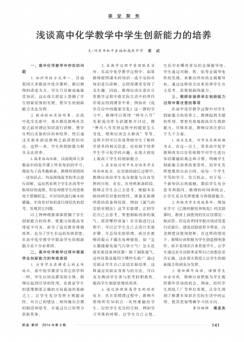 第143页:课堂聚焦·浅谈高中化学教学中学生创新能力的培养