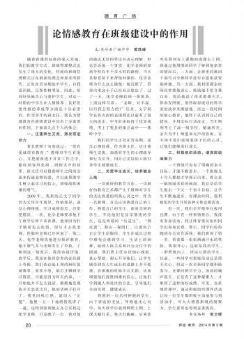 师道教研版 德育广场·论情感教育在班级建设中的作用 022 2014-05-301 2014年05月30日 星期五