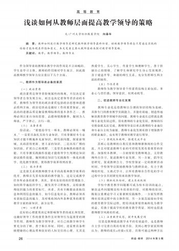 浅谈如何从教师层面提高教学领导的策略