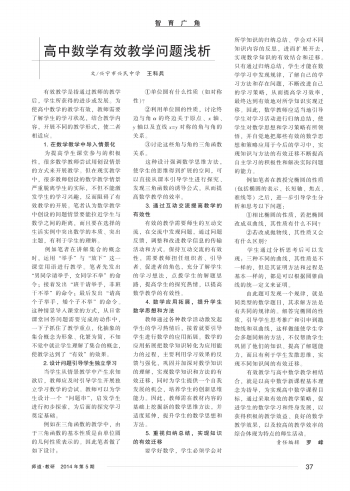 师道教研版 智育广角·高中数学有效教学问题浅析 039 2014-05-301 2014年05月30日 星期五