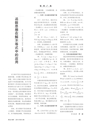 师道教研版 智育广角·函数思想在解不等式中的应用 047 2014-05-301 2014年05月30日 星期五