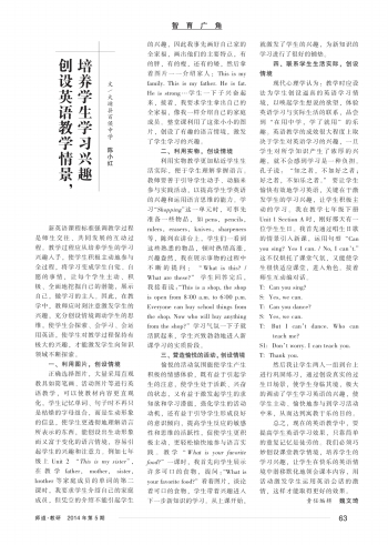 师道教研版 智育广角·创设英语教学情景,培养学生学习兴趣 065 2014-05-301 2014年05月30日 星期五