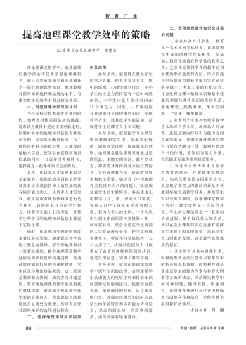 师道教研版 智育广角·提高地理课堂教学效率的策略 082 2014-05-301 2014年05月30日 星期五
