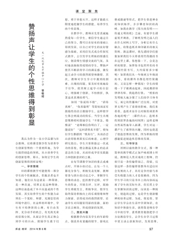 旧的课程教学可能使得一部分学生的个性被扼杀,但扼杀者也不知道,他们以为这就是一种帮助、是一种启迪,结果正是这种帮助、这种启迪造成了本不应造成的个性发展。其实培养学生的个性能力必须在一个宽松、和谐、充满信任的环境中进行。在这样的环境中,学生有不怕挫折的心理,有自由发挥、充分动手的机会,有无拘无束的思维空间,从而让学生真正体会到学习的自由。鼓励学生敢于幻想,勇于异想天开,这样才能最大限度地挖掘学生的潜能,培养学生的个性思维。