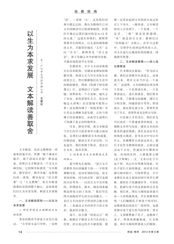 师道教研版 治教经纬·以生为本求发展 文本解读善取舍 016 2014-06-301 2014年06月30日 星期一