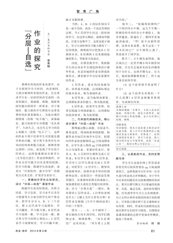 师道教研版 智育广角·“分层—自选”作业的探究 063 2014-06-301 2014年06月30日 星期一
