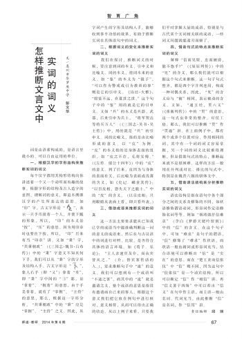 师道教研版 智育广角·怎样推断文言文中实词的词义 069 2014-06-301 2014年06月30日 星期一