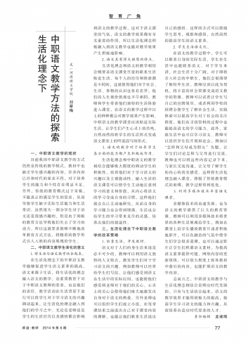 师道教研版 智育广角·生活化理念下中职语文教学方法的探索 079 2014-06-301 2014年06月30日 星期一