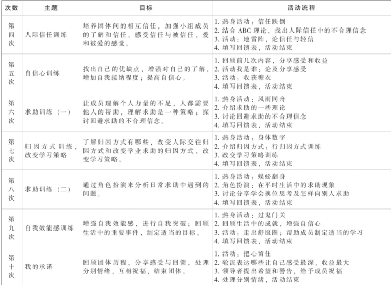 由后测的数据表明,实验组与对照组相比,在求助态度上,求助代价实验组和对照组没明显差异;而求助益处却有了显著的改变,其中来自老师的益处显著增加,来自同学的求助益处极其显著增加。在求助行为的各个维度中,执行性求助和回避性求助没有明显的差异,然而在工具性求助上,实验组确明显高于对照组,其中对老师的工具性求助没有明显的变化,但是对同学的工具性求助确有显著的增加。以上结论说明,团体心理辅导能改善数学学业不良初中生学业求助的态度和行为。