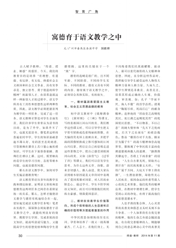 师道教研版 智育广角·寓德育于语文教学之中 032 2014-11-301 2014年11月30日 星期日