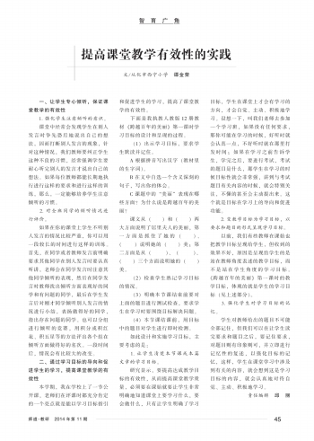 师道教研版 智育广角·提高课堂教学有效性的实践 047 2014-11-301 2014年11月30日 星期日