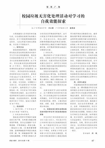 第049页:智育广角·校园垃圾无害化处理活动对学习的自我效能探索
