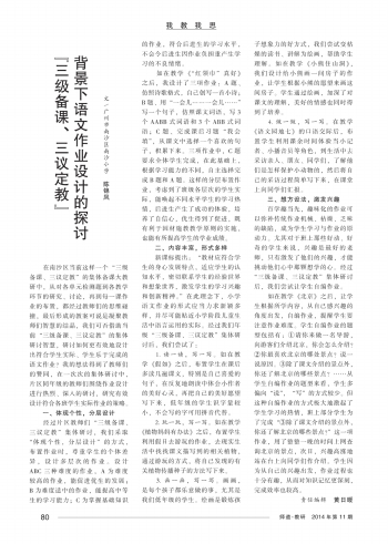 师道教研版 我教我思·“三级备课、三议定教”背景下语文作业设计的探讨 082 2014-11-301 2014年11月30日 星期日