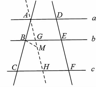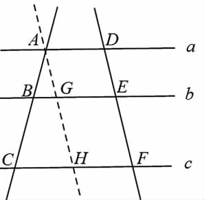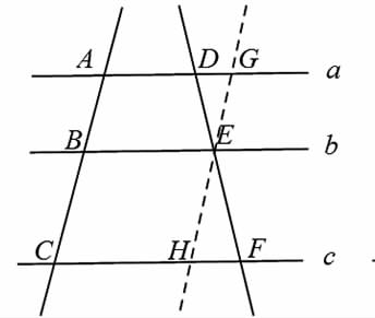 已知:直线a∥b∥c,AB=BC.求证:DE=EF.