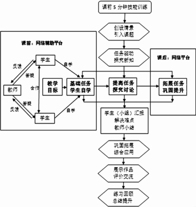 课堂教学根据教学目标制定不同层次的任务:基础任务、提高任务、拓展任务,以任务为驱动,实现翻转课堂教学。基础任务以课前“微课”为核心,学生完成学习。通过测试反馈学生对知识的掌握情况,及时调整教学策略。提高任务以课堂中探究新知,小组讨论,解决疑难问题,综合应用为主。拓展任务为课后巩固提升的拓展作业。
