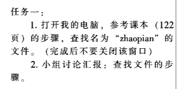 在教学广东教育出版社出版的小学第一册《信息技术》第三单元《信息技术王国的小能手》第26课《文件的查找与压缩》时,笔者利用“微课”,进行翻转课堂教学实践。