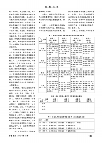 步骤二:合理设置教学流程和每项素养的测评问题。按照政治认同核心素养的层级和内容要求,把教学流程所要体现的核心素养问题化、情境化,即一个层级的问题对应着相应层级的政治认同核心素养,同时每一个教学环节需要设置的问题必须体现政治认同核心素养的四项内容,并制定调查问卷表,如下表表2、3。