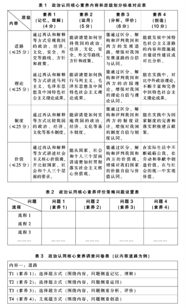 步骤一:根据政治认同核心素养内容和素养等级,确定内容和素养层级间的问题设置情境要求,如表1。