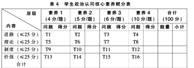 笔者通过上述评级策略的构建和实践,发现此评价策略既可以测个人,也可测集体;既可以测不同素养的个人或群体,也可测政治认同的深度,也就是说,同一测评对象,我们可以通过四项内容来测评其素养层级,同时也可以通过不同素养层级看出其每一项详细政治认同内容深度。从素养层面看,素养1和素养2两项基本素养不错,但在评价、分析层面,尤其是创造层面有待提高。社会科学本质上是一种自我认识、自我理解的学问,是要直接面对有关生活的意义问题,而人的认识常常受制于历史决定论和社会决定论的影响,尤其是在转型期的现代中国,全面深化改革已经拉开帷幕,利益格局正在经历着深刻调整和变动,学生的政治认同核心素养评价策略需要更进一步的理论和实证研究。