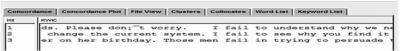 从本次作文题目交代的背景来看,澳大利亚网友Rosemary因没有通过汉语水平等级考试而情绪低落。学生首先要考虑如何翻译“没有通过”考试,除了用couldn’t pass外,还可以用fail, 那么fail 在句子中的搭配如何?如果学生不知道,可利用语料库分别对fail与failed 进行搜索。得出以下的信息。