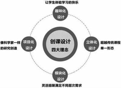 趣味化设计,让学生体验学习的快乐。创客教育是一种兴趣导向的教育模式,趣味性是创课设计的首要原则;立体化设计,超越传统课程单一形态。创课不是传统课程的翻版,而是一种融合多种学习理念与多种信息技术,以提升学生创客素养和创新创造力为核心目标的全新课程形态;模块化设计,灵活组装满足不同层次需求。创课的模块化设计,即根据程序模块化的构想和编制原则设计课程,充分考虑课程编制和课程实施的要求,将课程内容分解成适度松散而又相互关联的子模块;项目化设计,像科学家一样的研究创造。创课的项目化设计,就是将传统说教的课程知识与技能融合在一个个创客项目中,学生通过完成一个个富有挑战的创客项目来达成课程目标。