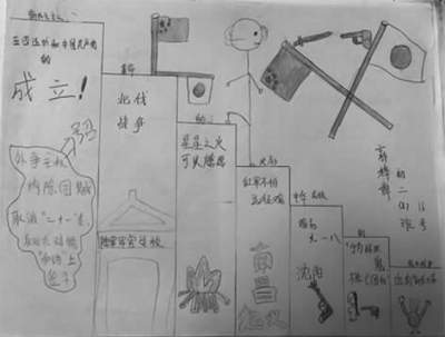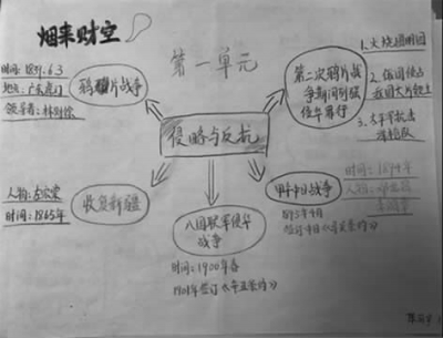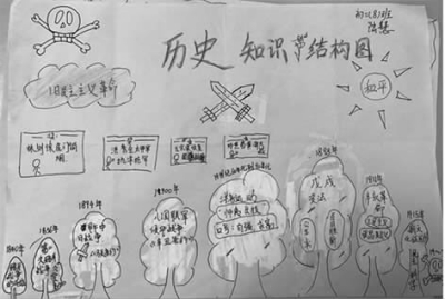 反思:由于结构图示教育法突出历史教材知识结构的特点,而且学生在教师指导下对历史知识进行分析、综合、概括、系统化。有些学生绘制的知识结构图相当简洁、简易清晰,不需要很多的文字就能把学科章节或者全册书本的内容集中归纳地体现出来,学生在创建知识结构中更能抓住复习的重难点。