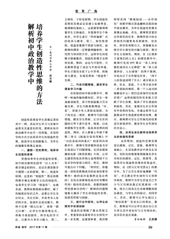 101:智育广角·解析初中政治教学中培养学生创造性思维的方法