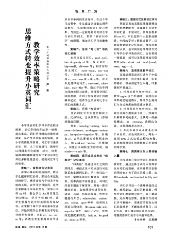 103:智育广角·思维方式转变提升小英词汇教学效率策略研究