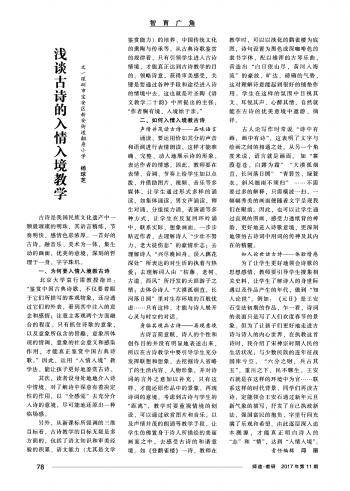 师道教研版 智育广角·浅谈古诗的入情入境教学 080 2017-11-201 2017年11月20日 星期一