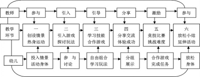 运动竞技型:该类型教学模式主要用于对岭南体育游戏动作技能的学习、锻炼,即在体育游戏教学中引导幼儿学习游戏玩法,练习动作技能,并以小组为单位在竞技比赛中,挑战难度,提高动作技能。