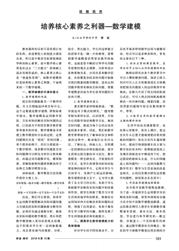 师道教研版 我教我思·培养核心素养之利器—数学建模 103 2018-10-201 2018年10月20日 星期六