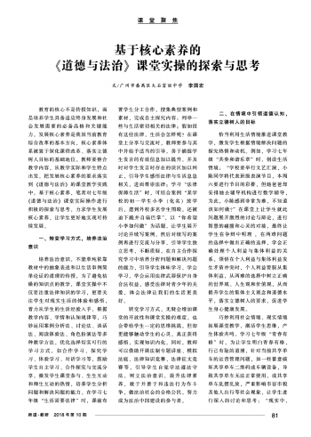 师道教研版 课堂聚焦·基于核心素养的《道德与法治》课堂实操的探索与思考 083 2018-10-201 2018年10月20日 星期六