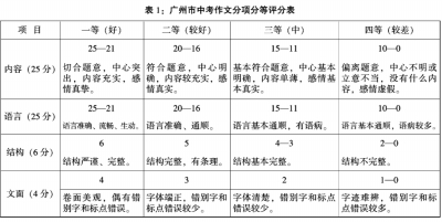 当前,阅读教学的比较规范和写作教学的比较杂乱,是初中语文教学领域里的两大景观。究其原因,有以下两点:一是教学课程的差异。阅读教学的课程,是非常丰富、非常规范和非常明确的。以人教版七年级(下)第一单元为例,阅读任务包含以下篇目:《从百草园到三味书屋》《爸爸的花儿落了》《丑小鸭》《诗两首》《伤仲永》。从体裁的角度分析,涵盖散文、寓言、诗歌等;从时空的角度分析,涵盖古(如《伤仲永》)今(如《爸爸的花儿落了》)中(如《从百草园到三味书屋》)外(如《丑小鸭》);从教学时长分析,《从百草园到三味书屋》《爸爸的花儿落了》《伤仲永》是基本篇目,必须耗时3-4课时,《丑小鸭》《诗两首》是非基本篇目,只须耗时1-2课时。每个篇目,除了文本外,不仅有阅读提示、课后练习,还有 “读一读·写一写”栏目下的核心字词(即语文试卷第一、二题的考察范围),以及文本以下的选文出处、字音、字形、字义等助读系统。写作教学的课程就比较简单。人教版七年级(下)第一单元的写作教学,在“叙事要完整”的专题下,只有写作导引和写作实践两部分。二是教学评价的差异。语文试卷,阅读部分有参考答案。该答案不仅分点列出(俗称采分点。考生答中采分点,即有分;偏离采分点,即无分),而且每点分值,均有明确的规定(如果分值为5分的题目有3个采分点,那么命题者可能规定每个采分点分值是1、2、2)。写作部分没有参考答案,只有一个涵盖内容、语言、结构和方面等四个项目分等级的评分标准(该标准,不因试题变化而变化)。
