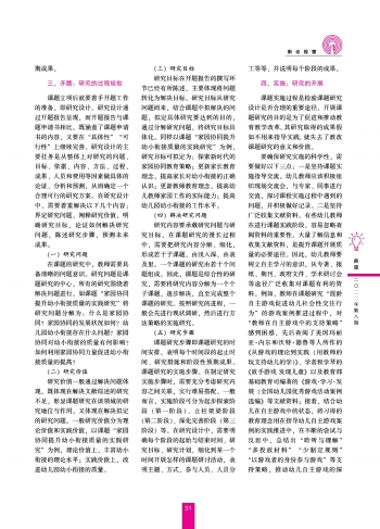 在课题的研究中,教师需要具备清晰的问题意识。研究问题是课题研究的中心,所有的研究围绕着解决问题进行。如课题“家园协同提升幼小衔接质量的实践研究”将研究问题分解为:什么是家园协同?家园协同的发展状况如何?幼儿园幼小衔接存在什么问题?家园协同对幼小衔接的质量有何影响?如何利用家园协同力量促进幼小衔接质量的提高?